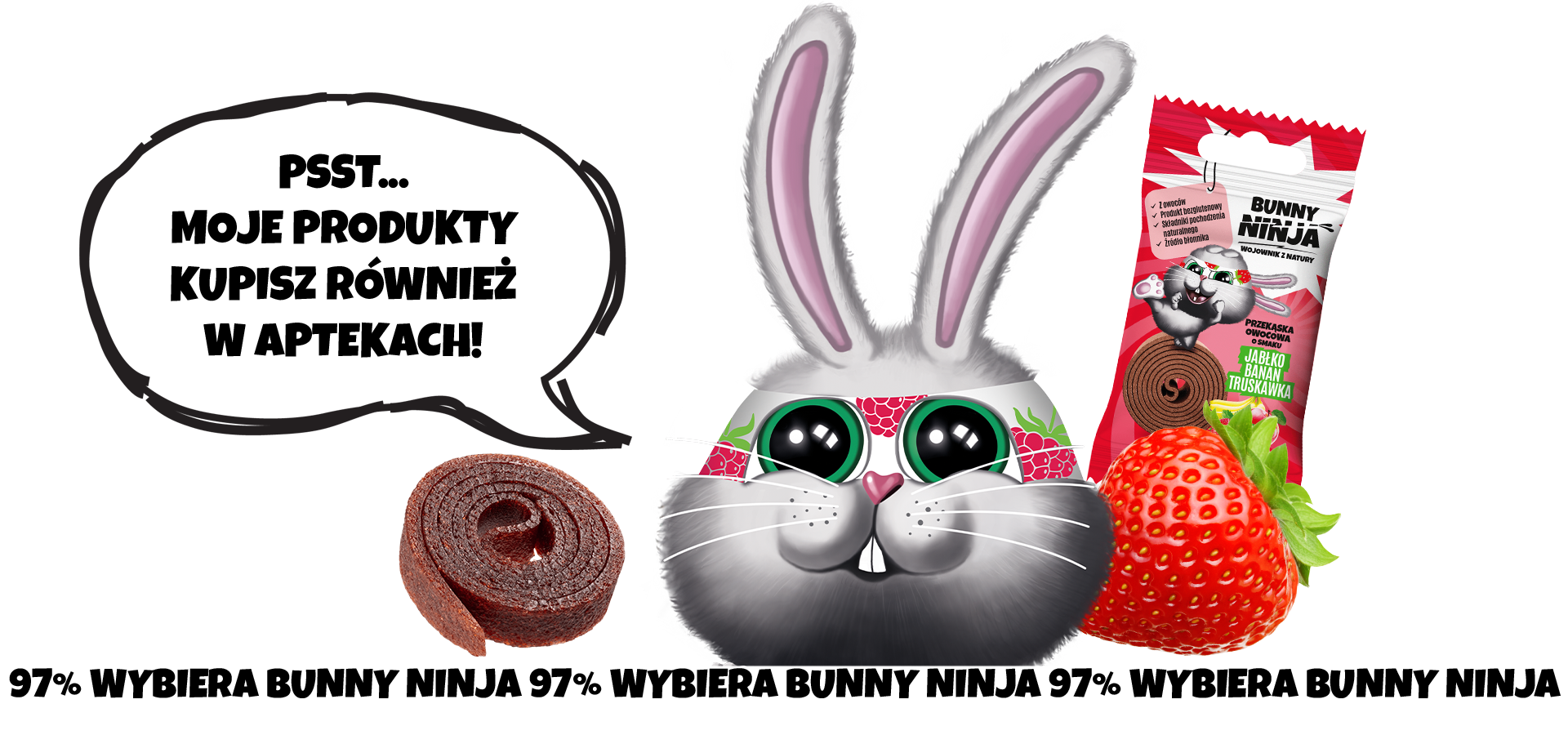 Aż 97% badanych Konsumentów uważa owocową przekąskę Bunny Ninja za najsmaczniejszą na rynku spośród testowanych produktów! *